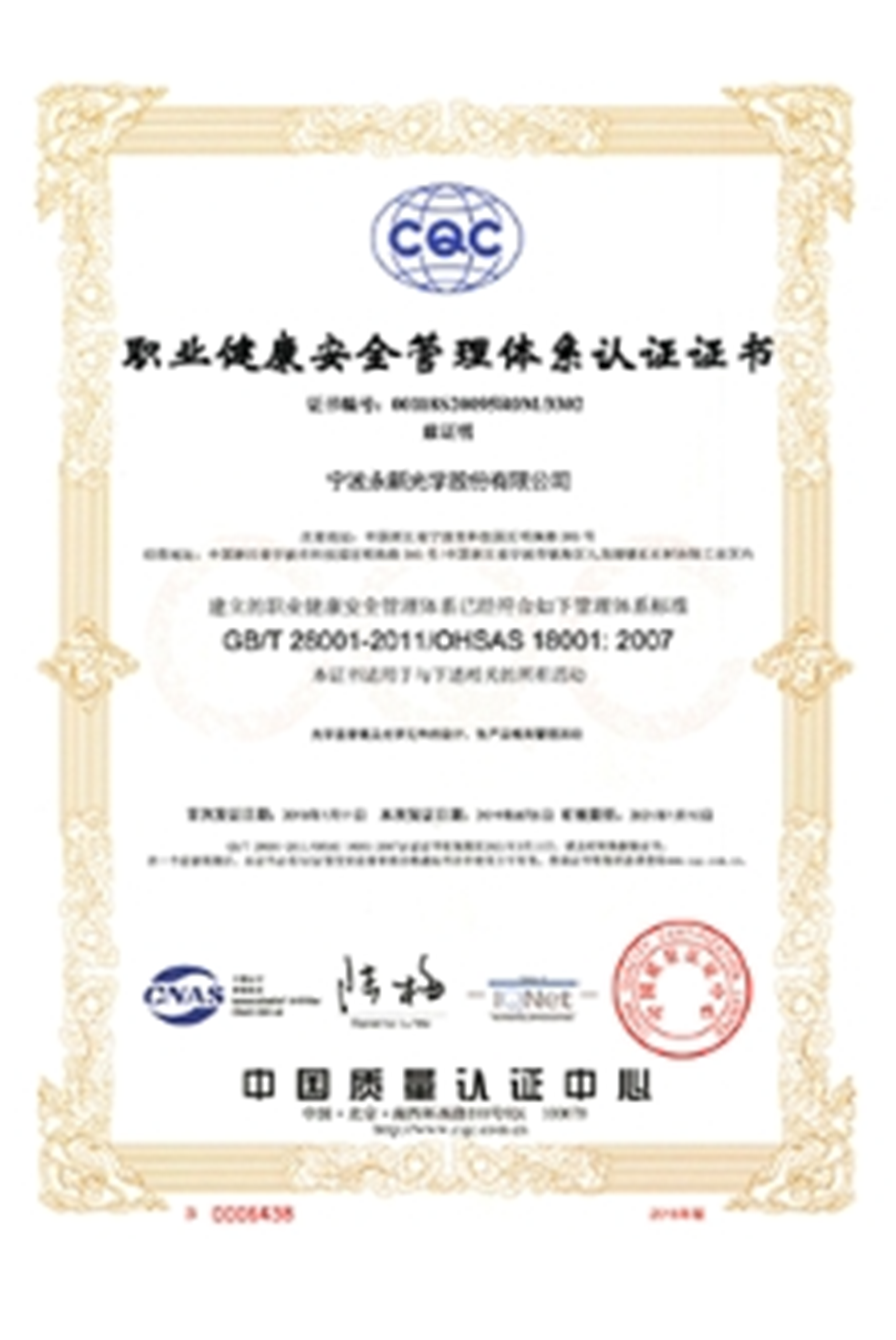 职业健康安全管理体系认证
