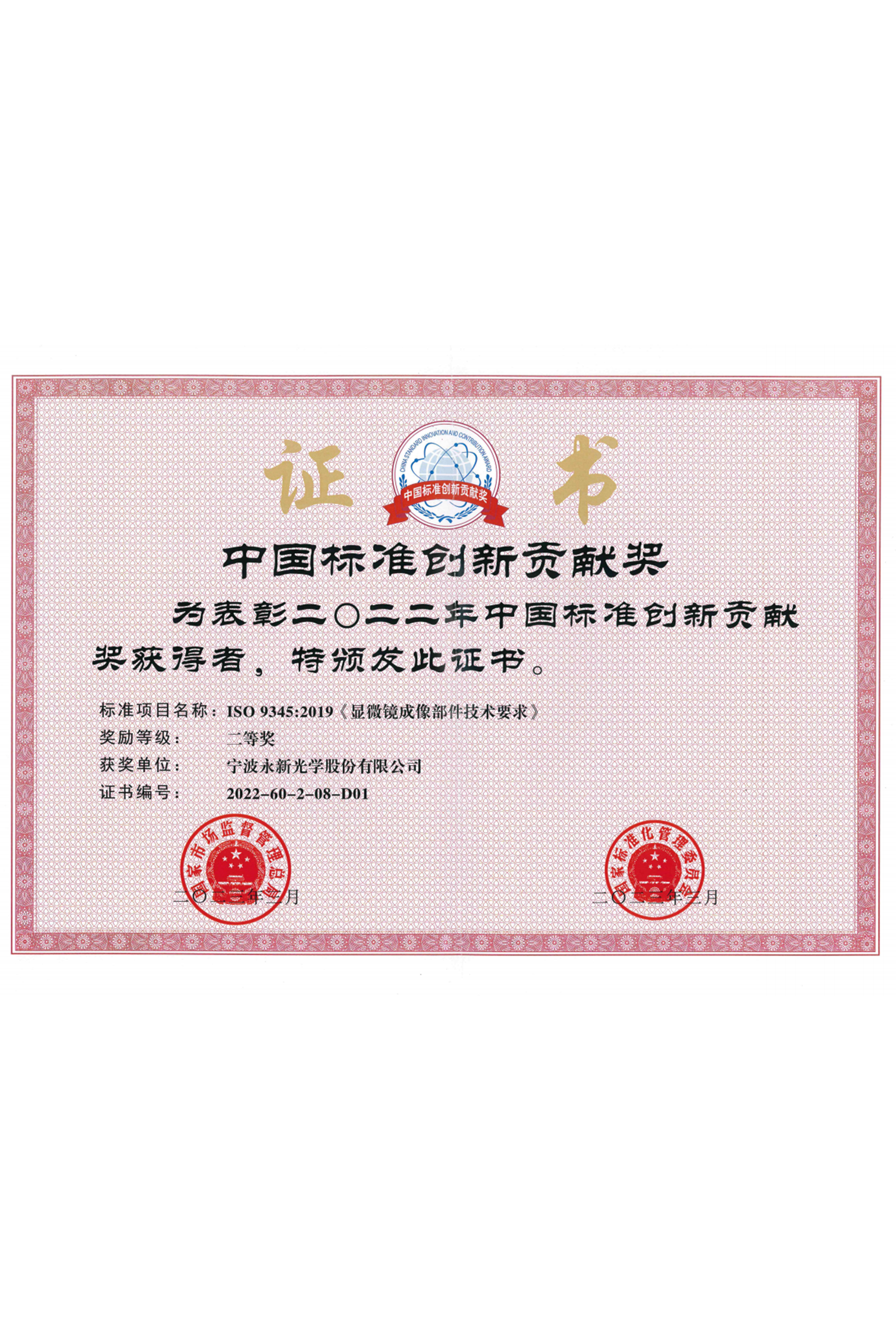 2022年中国标准创新贡献二等奖