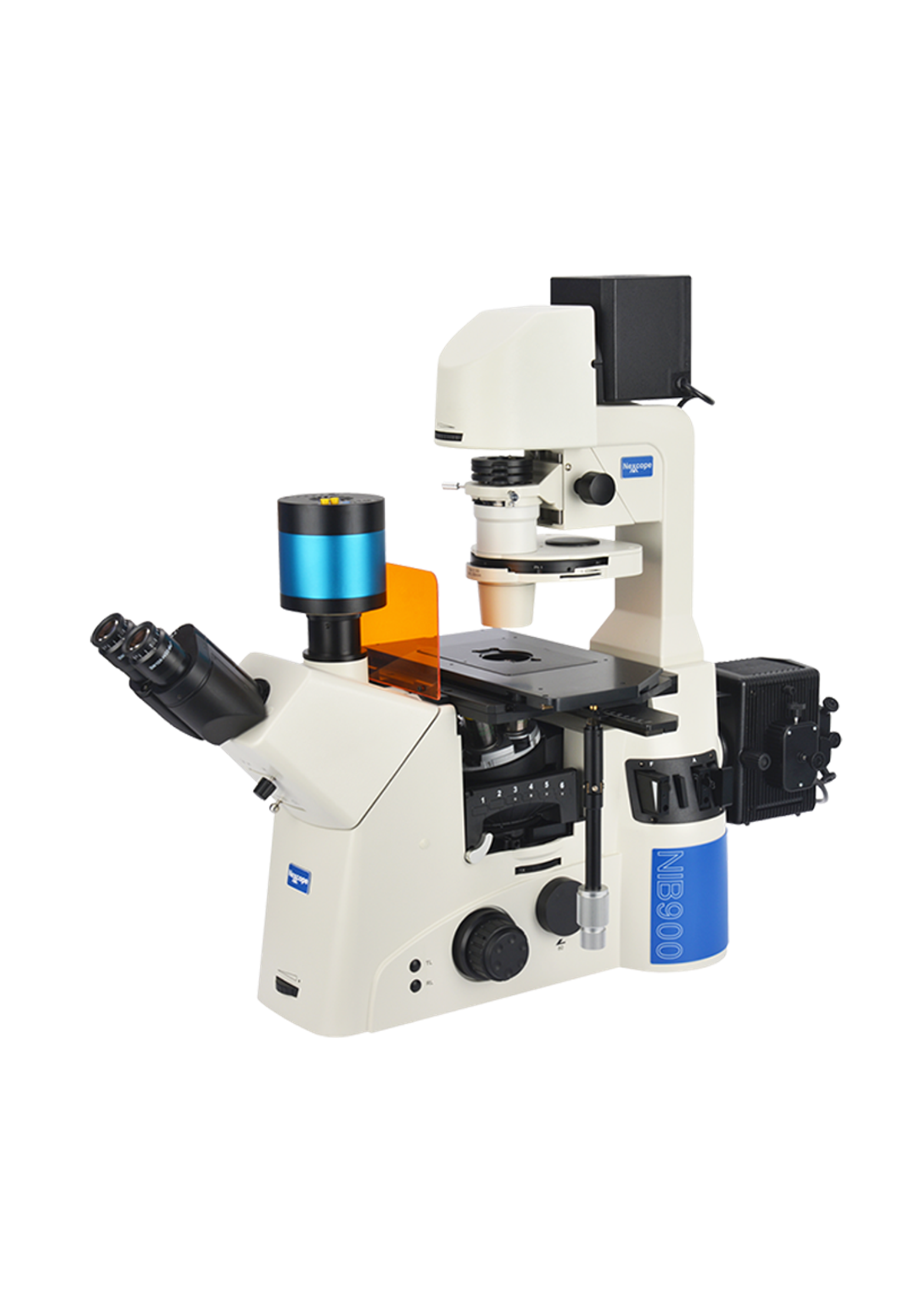 NIB900系列科研级倒置荧光显微镜配置表 NIB910 NIB920 NIB910-FL NIB920-FL NIB950 NIS无限远光学系统 目镜 ・SW10X/22 ・SW10X/25 ・EW12.5X/17.5 ・WF15X/16 ・WF20X/12 观察头 铰链式三目(带勃式镜),45度倾角,瞳距47-78mm 偏光显微镜 ・N-iPLFN PH 平场半复消色差相差物镜4X、10X、20X、40X、60X・N-iPLFN 平场半复消色差物镜10X、20X、40X、60X转换器 六孔物镜转换器,带DIC插槽 编码式六孔物镜转换器,带DIC插槽 六孔物镜转换器,带DIC插槽 编码式六孔物镜转换器,带DIC插槽,定位准确稳定,其定位误差≤0.010mm 电动六孔转换器,带 DIC 插槽, 转动时有物镜保护功能 聚光镜 长工作距离转盘式聚光镜,NA 0.55,WD=26mm, 可以安装6个组件,相衬、DIC、明场 长工作距离电动转盘式聚光镜,NA 0.55, WD=26mm, 可安装6个组件,相衬、DIC、明场 照明 透射照明 ・柯勒照明,12V/100W卤素灯 ・柯勒照明,10W LED照明 柯勒照明,10W LED照明 落射照明 —— ・100W荧光汞灯 ・10W LED荧光照明 ・金属卤化物灯 调焦系统 同轴粗微动升降机构,移动行程9mm(向上7mm,向下2mm), 粗调行程2mm/ 每圈,微调行程0.2mm/ 每圈,微调焦机构空回≤0.002mm 电动同轴粗微动升降机构,移动行程9mm(向上7mm,向下2mm),最小分辨率0.02μm(光栅型),运动重复定位精度:±0.1um,具有防止平台机械下滑功能载物台 显微手动操作平台(X,Y,Z):平台尺寸≥340mm x 230mm,移动范围≥130mmX85mm,可配套多孔板,35mm培养皿和切片三种专用样品夹适配器,带控制器、摇杆。样本在载物台上做5mmX5mm范围内移动标本时其调节量≤0.008mm;可根据需求在顶层平台上安装不同尺寸的小工作台 电动控制(光栅型):行程范围130mmx100mm ,平台尺寸325mmx144mm , 最大速度:10mm/s分辨率:0.1μm,重复精度:±0.5μm,可根据需求在顶层平台上安装不同尺寸的小工作台载物托盘 ・Terasaki 托板 ・φ38mm ・φ54mm 托板 ・通用托盘 ・96 孔板托盘 中间倍率 倍率有 1x, 1.5x 倍率有 1x, 1.5x,CF档 机身端口 转盘式端口切换(左侧端口/右侧端口/目视观察),分光比:左侧/目镜=100/0;右侧/目镜=80/20;选配/目视=0/100 转盘式端口切换(左侧端口/右侧端口/目视观察),分光比:左侧/目镜=100/0;右侧/目镜=100/0 显示屏 —— 4.3 寸显微镜使用状态显示屏 —— 4.3 寸显微镜使用状态显示屏 —— 观察方式 明场、相衬、DIC、暗场 明场、相衬、DIC、暗场、荧光 落射荧光附件 滤光片转盘 —— 落射荧光滤光片转盘 编码式落射荧光转盘 电动落射荧光滤光片转盘 荧光照明器 —— 带高性能滤光片, 可配置最多六个落射荧光滤光块,明场观察期间使用一个位置,可对中的反射光视场光阑的孔径光阑、 三孔滤光插板,NFP-1N 100W 智能汞灯电源箱