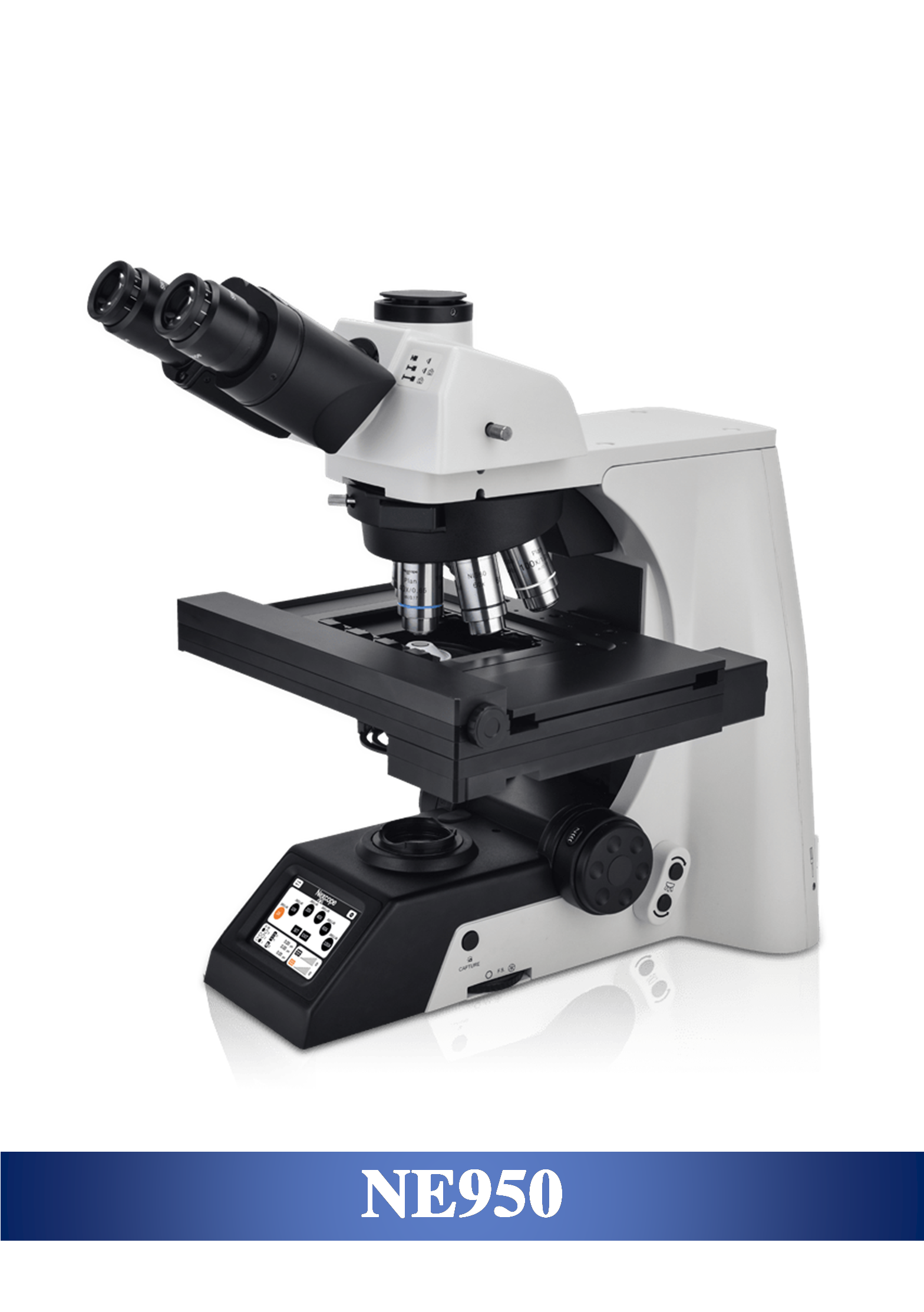 NE900系列研究级正置生物显微镜配置表 NE910手动显微镜 NE930半电动显微镜 NE950电动显微镜 显微镜机架 光学系统 NIS 无限远光学校正系统(可选择NIS45或NIS60系统) 物镜转盘 ・手动6孔位物镜转换器 ・编码式6孔位物镜转换器 ・电动6孔位物镜转换器(可选配7孔位物件转换器) 聚焦机构 低手位同轴调焦机构(带上限位及松紧调节环),调焦范围35mm,微调格值1um 低手位电动调焦机构,左右手轮独立操作,三档速度调节,调焦范围30mm,重复定位精度:0.1um,电动逃离和恢复机制 透射光照明 ・12V 100W 卤素灯 ・3W/5W/10W/15W LED多种功率可选(可选光强管理功能) 3W/5W/10W/15W LED多种功率可选 ,透射光源亮度电动控制,光强管理功能 显示屏 可选配显微镜使用状态显示屏 —— 触摸控制屏 观察镜筒 双目观察镜筒 30°倾斜 ,瞳距调整范围 :47-78mm
